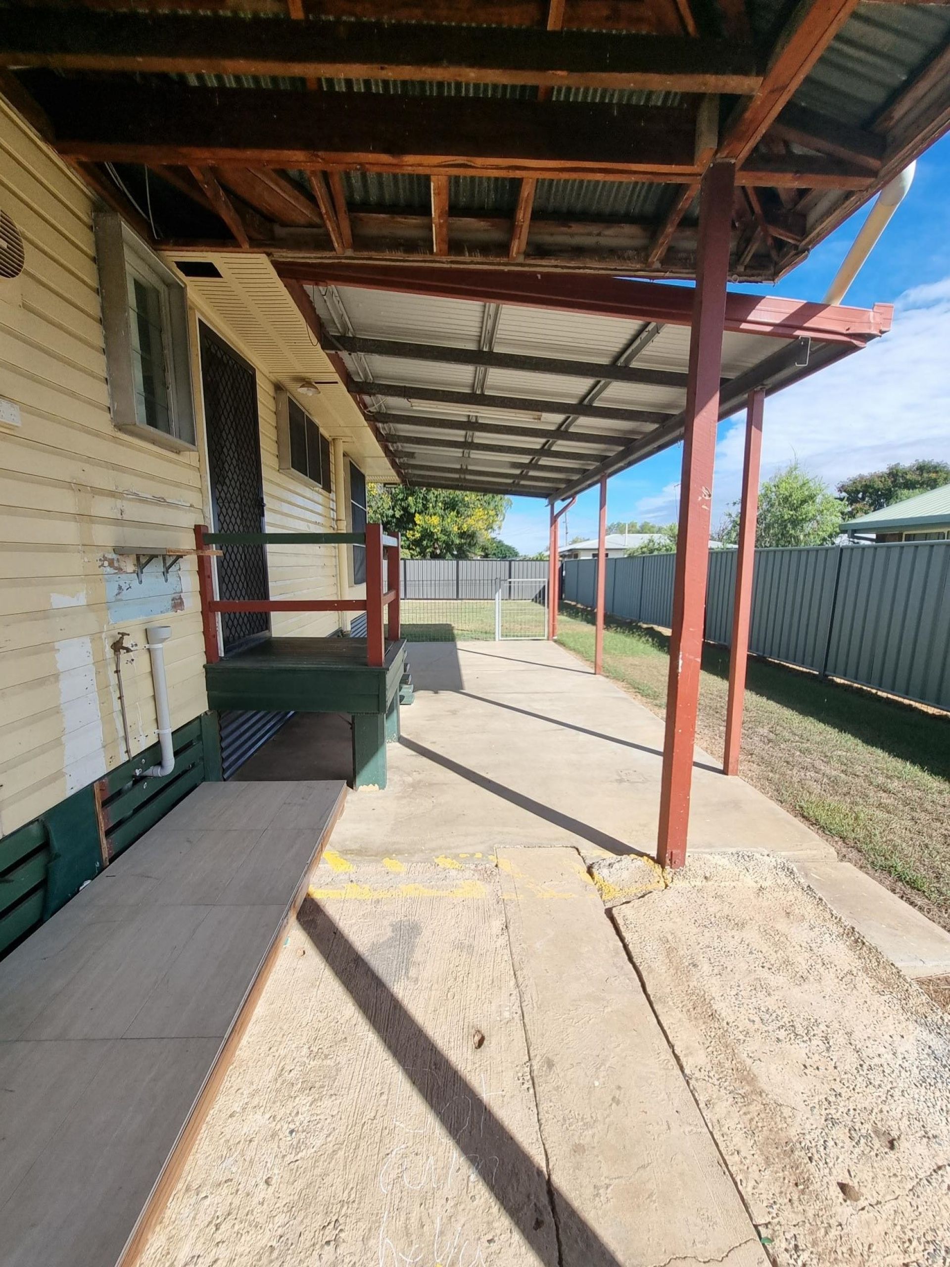 - Fully fenced back yard in Colourbond